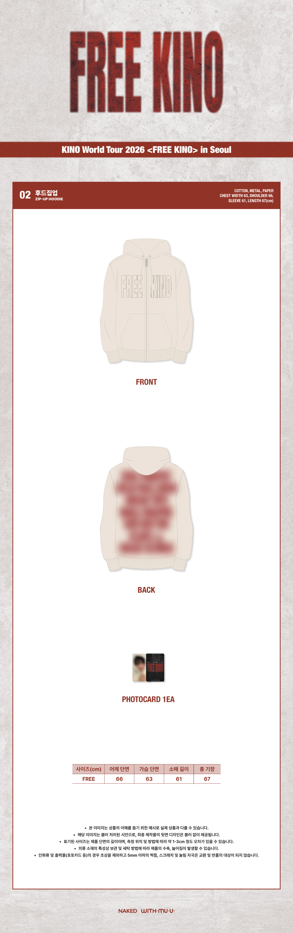 [Pre Order] KINO FREE KINO Goods - ZIP-UP HOODIE